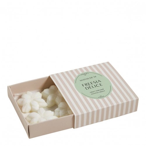 Déjate seducir por la suavidad de un paseo al amanecer entre jardines en flor con la Cera Perfumada Freesia Délice de Mathilde M. Una sinfonía olfativa que mezcla frescura frutal con la elegancia floral más delicada.