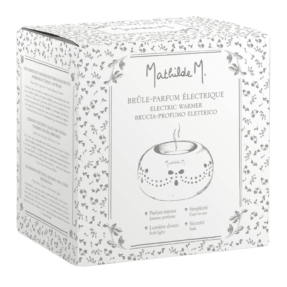 Disfruta de la comodidad y elegancia del Quemador Eléctrico Perle, el aliado perfecto para transformar tu hogar en un espacio lleno de aromas cautivadores con las Ceras Mathilde M.